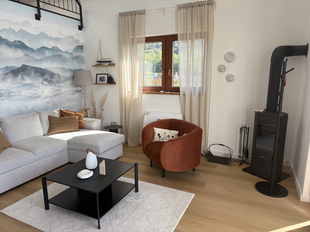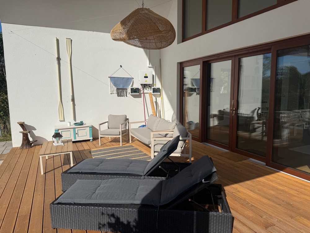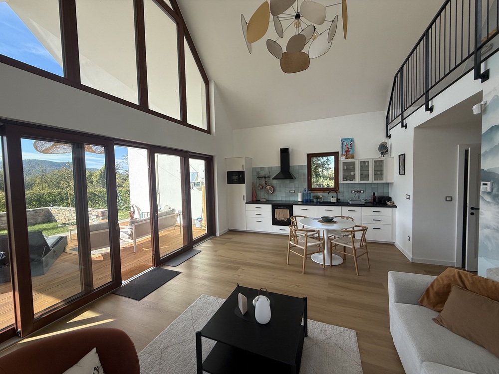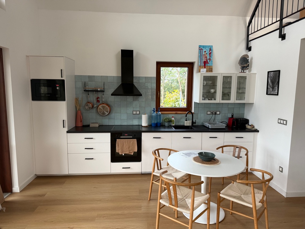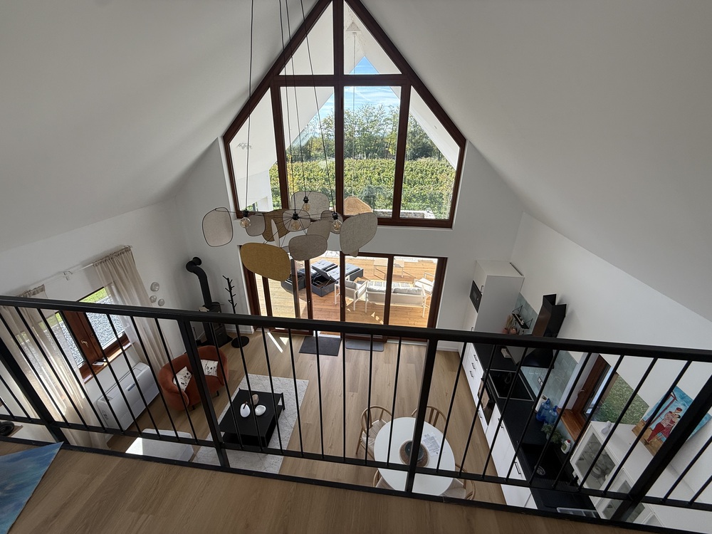 A teraszos, panorámás új vendégházban az alsó szinten egy teljesen felszerelt konyha, asztallal, székekkel, a nappali részen egy kihúzható kanapé, egy szoba és egy zuhanyzós fürdőszoba külön wc-vel található. A szobában az ágy franciaággyá összerakható és 2 külön ággyá is széthúzható. A galérián lévő ágy franciaággyá összerakható és 2 külön ággyá is széthúzható. A vendégházba kutya nem hozható!